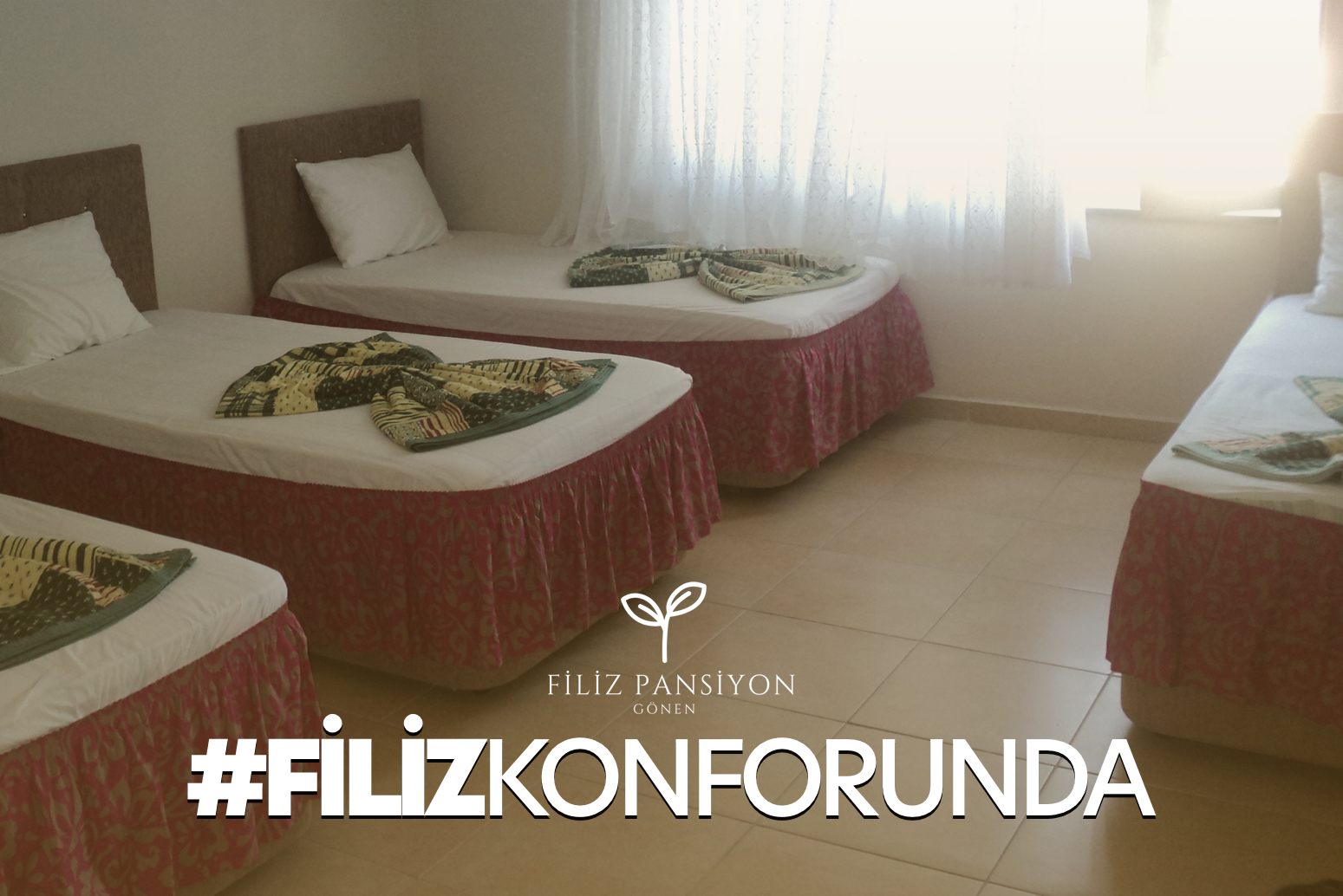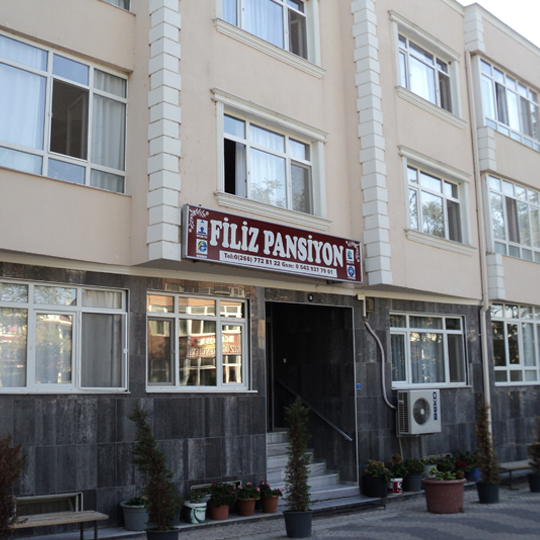 Gönen'in en eski konaklama tesislerinden olan Filiz Pansiyon Gönen Şehir Parkının merkezinde ve çarşı merkezine sadece 100 metre mesafededir. Dünyaca ünlü şifalı Gönen Kaplıcalarının hemen yanıbaşında olan Filiz Pansiyon misafirlerine mükemmel bir konaklama deneyimi sunmak için çalışmalarına aralıksız devam etmektedir.